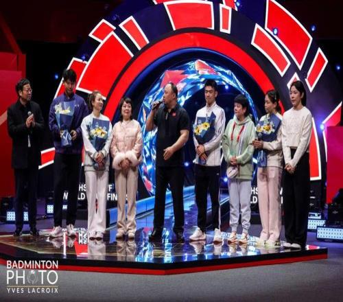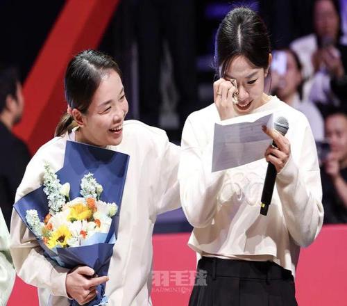 昨晚的比赛后,中国羽协在赛场举行了中国国家羽毛球队运动员退役仪式,陈清晨、郑思维、黄雅琼、刘雨辰四位国羽功勋名将在亲友和全场观众的见证下完美转身,走向人生新篇章。